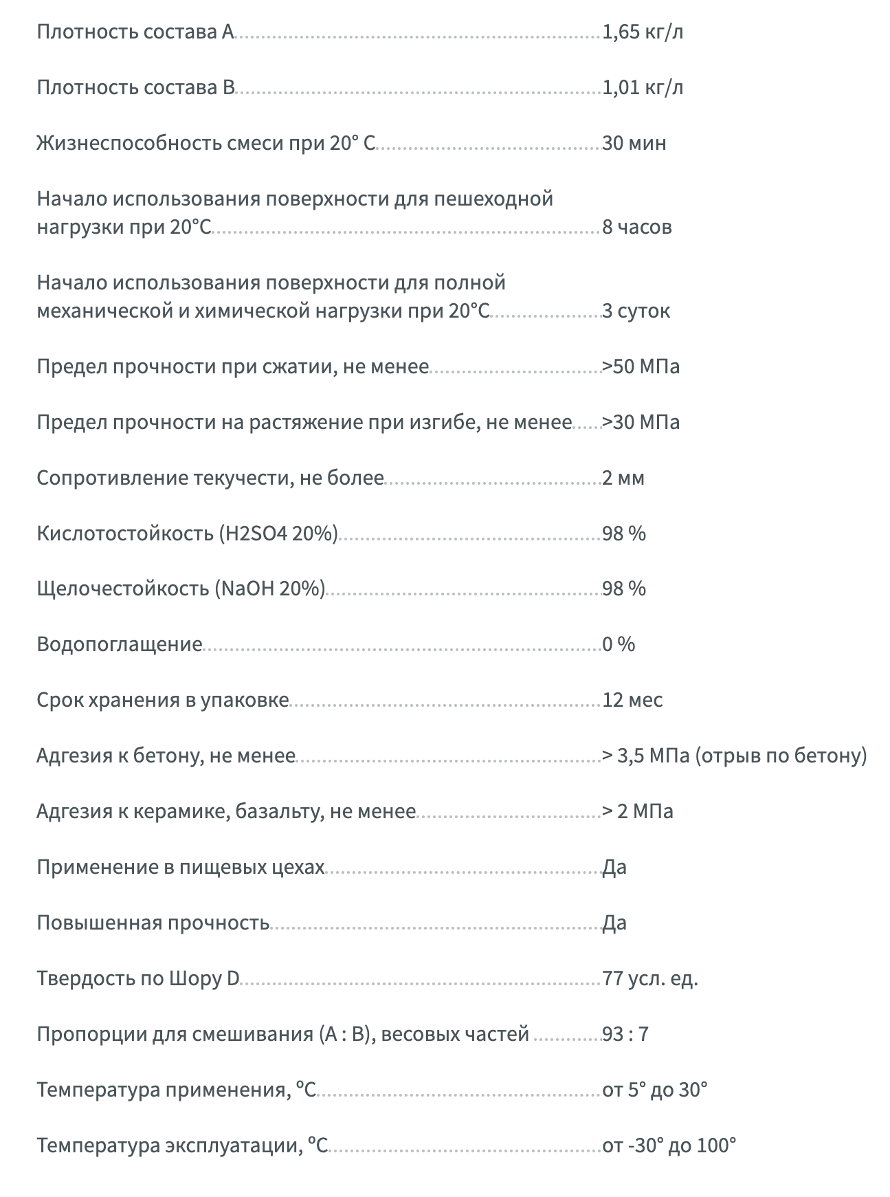 Использование поверхности (при температуре воздуха от +18º до +25º С):- Эксплуатацию поверхности для пешеходной нагрузки при этом режиме отверждения можно начинать через 8 часов;